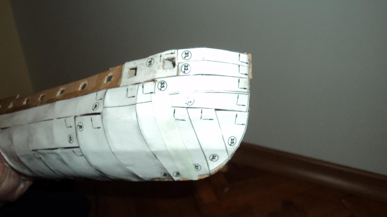 Много лошо брат.Да беше ползвал фазер или шперплат.Аз съм нов но въобще няма да има стабилност-да не говорим за усукване на модела.Просто основата ти е калпава и шпангоутите и те с картон-леле мале.