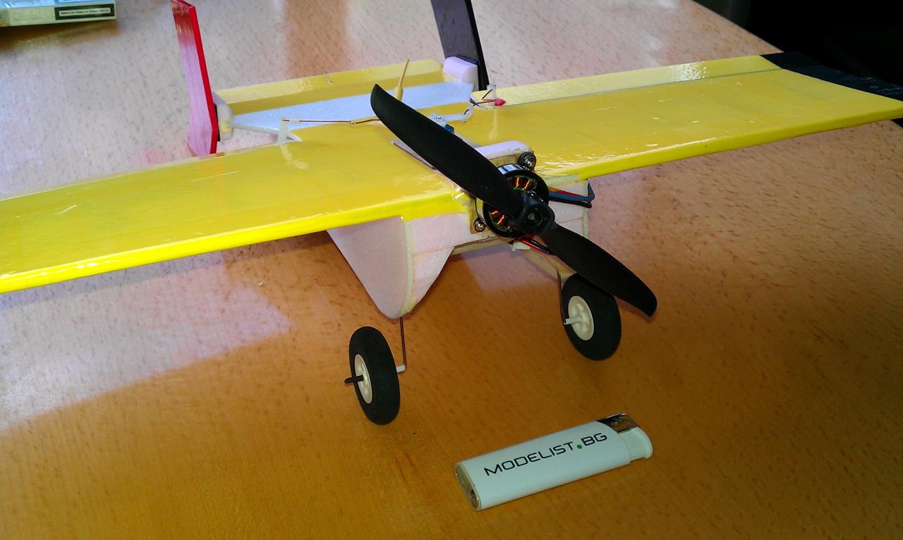 Преди време попаднах на едно дребно моделче в руския форум rc-aviation. Интересна птичка се получи :laughing: Е не се събира в жабката на колата :laughing:, но мога да я мъкна спокойно с мен, като остава достатъчно място в багажника :wink: