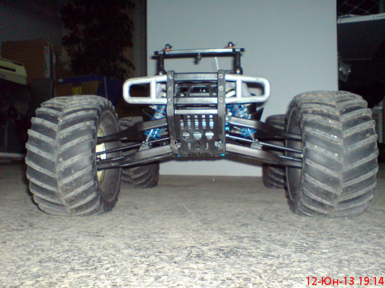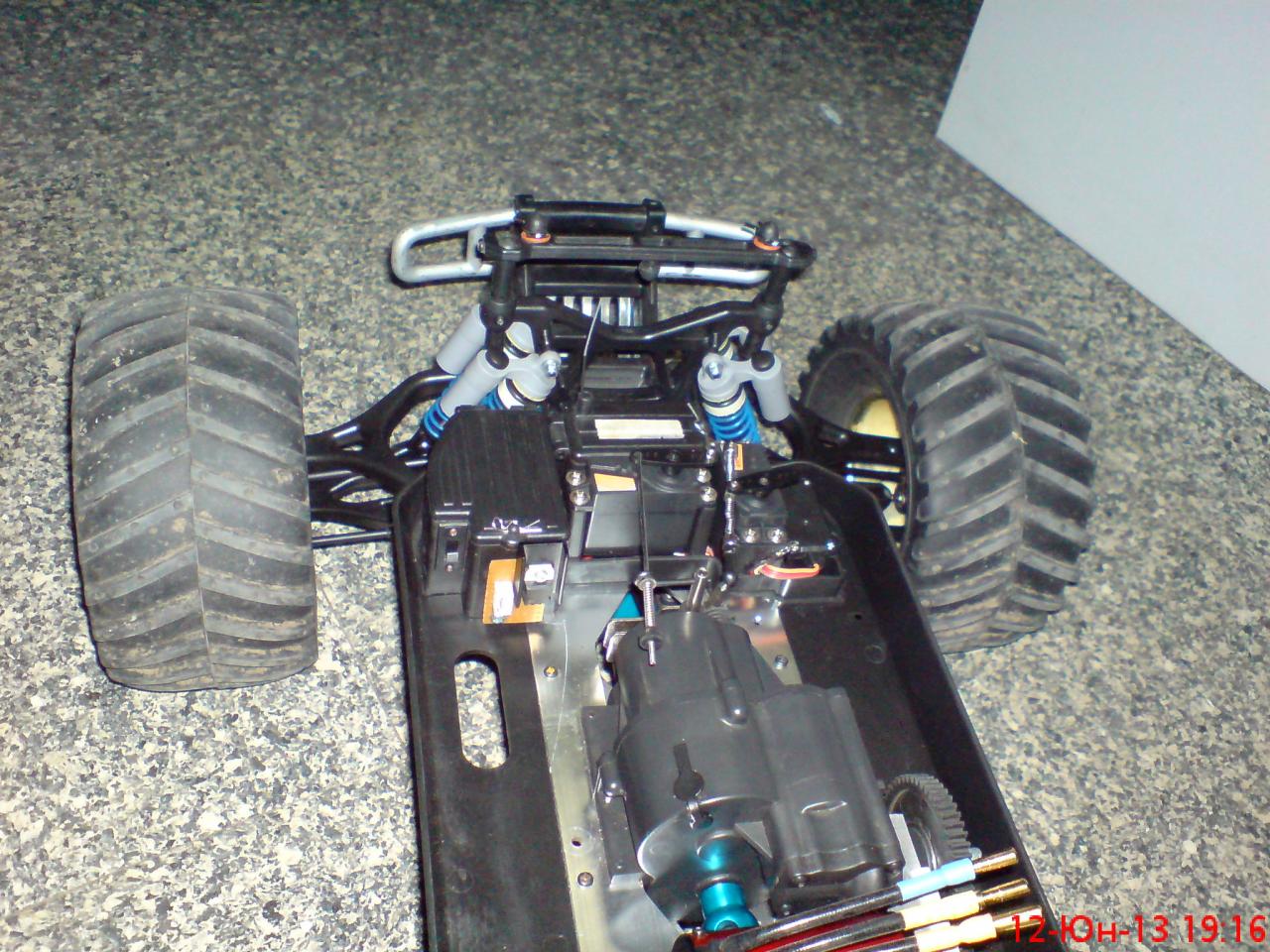 Здравейте на всички маниаци. От доста време гледам това моделче но като ново винаги са му били много парите за мен.Но наскоро изпадна втора употреба и изгорях :smile: .След като го получих последва тотално разглобяване на всеки един възел следователно почистване и смазване където трябва.Не му знам точния произход но състоянието му беше добро.Последва смяна на някои неща които не ми харесаха .Имаше малко спукани носачи като за начало.Следващото нещо беше да си изработя нови втулки на кормилото.Подмяната им със съчмени лагери ми се видя безмислена предвид големия ход.После загледах сервото за завиване което със своите 3 кг. ми се видя невзрачно за модела и беше заменено с 14 кг.Дотук добре.Сега дойде ред на амортисьорите.И тук вече започват въпросите.Някой играл ли си е с тях по подробно.5 бр. като ги натисна рязко и пусна без пружината не се връщат.Маслото е сменено.Разглобих един но не видях нещо особенно в устройството му , но все пак нещо ми убягва.Идеята ми е като остана по свободен да си ги изработя от дурал но все пак трябва първо да разбера защо не работят коректно.Основния ми замисъл е да си остане във оригиналния вариант само че с безколекторен мотор.Спрях се на ЛЕОПАРД 2700кВ който ще работи на 2 или 3 клетки.Варианти като разни Мамби и питони не ме блазнят.Ще се кара из треволяци и камънаци докато се печат пържолките на скара :laughing: .