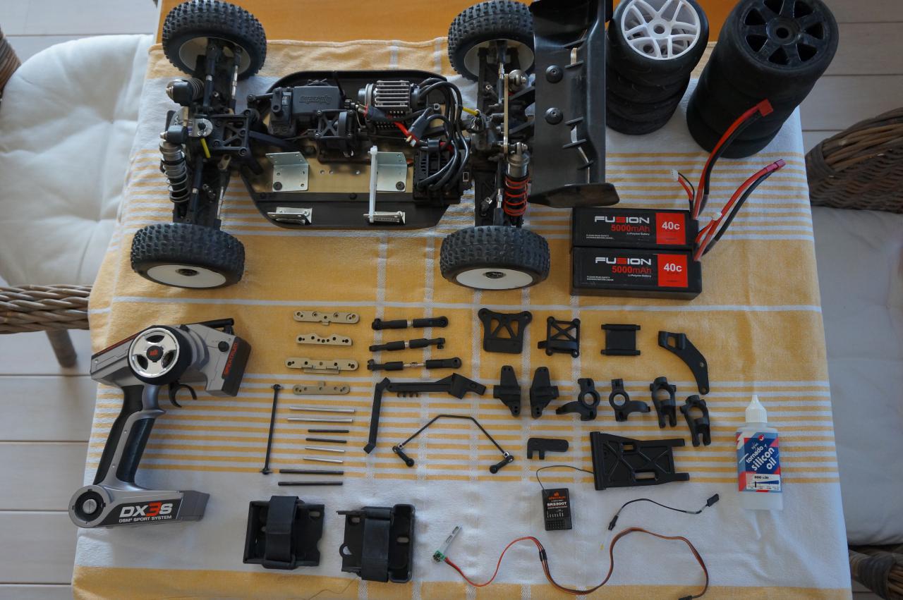Модела е в супер състояние , сменил съм му хъбовете с метални , давам към него много части , виждат се на снимката , + 2батерий по 5000mAh 3s 40c - 80c , апаратуратa e Spectrum DX3S Telemerty . + 2а комплекта гуми , едните са оригиналните с модела , друдите са чисто нови LRP onroad .