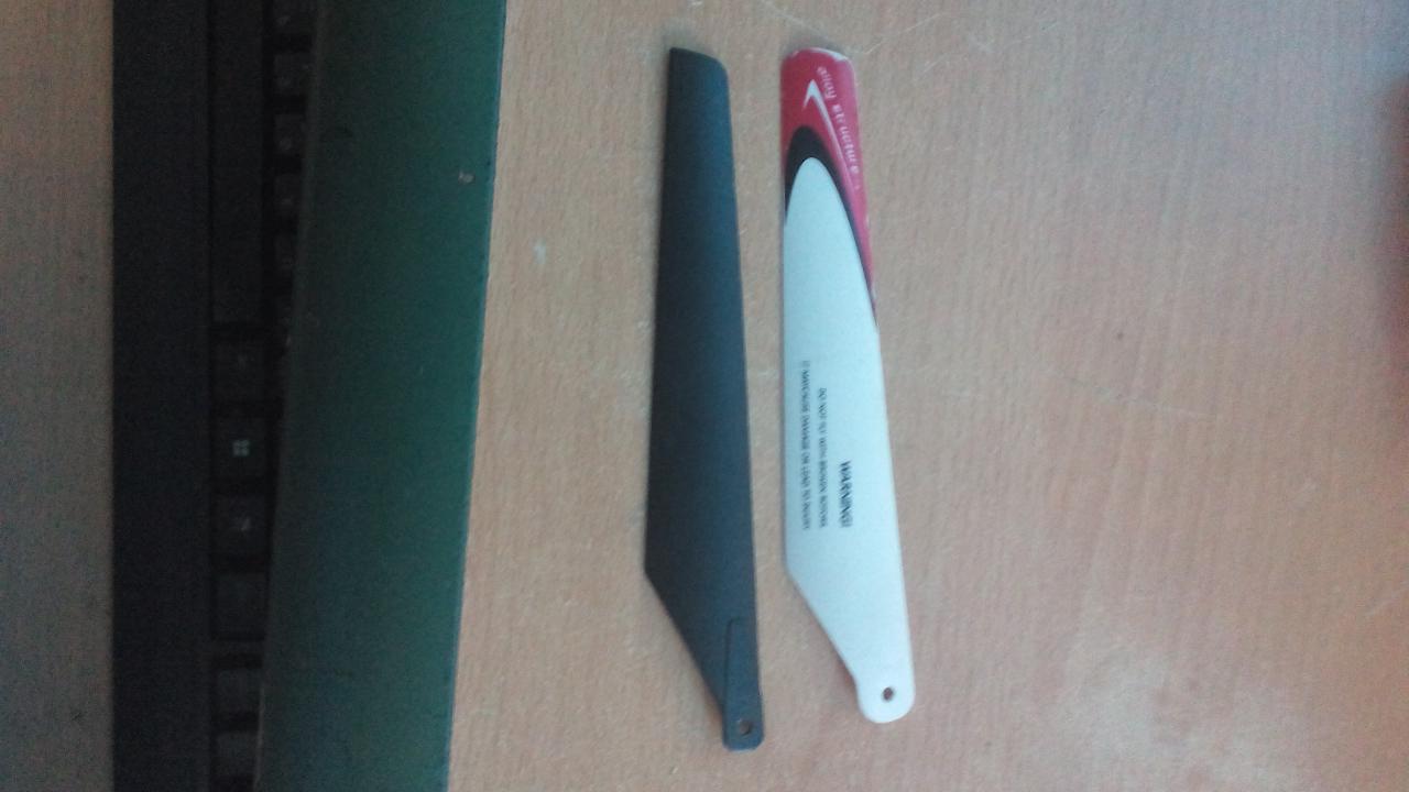 Здравейте, от 1-2 години имам един хеликоптер, който не работи, защото едната перка се счупи при една катастрофа :laughing: . Тогава не можах да намеря перки като оригиналните, но купих малко по-малки. За жалост се оказаха слаби за да вдигнат хеликоптера. Ако някой може да ми помогне да намеря перки като оригиналните (4 перки) ще съм му много благодарен. Ще дам снимки на оригиналната перка (тя е с бяло и червено) и на тази която купих (чисто черна). Приложение 7127Приложение 7128Приложение 7129