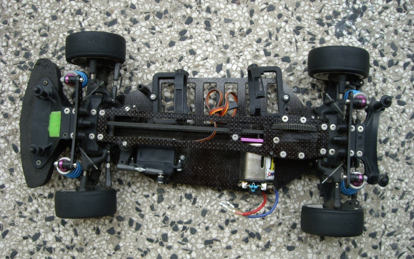 Шасито е SCHUMAHER mission 1/10 carbon, оборудвано е с електромотор YOKOMO ProStock II с 19x2 намотки, гуми Ellegi technics слик и серво TowerPro SG5010. Цена за всичко 250лв. с подарък купе (body).