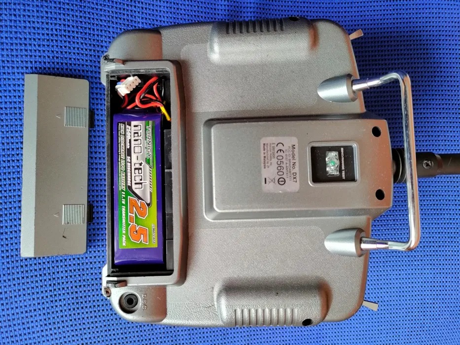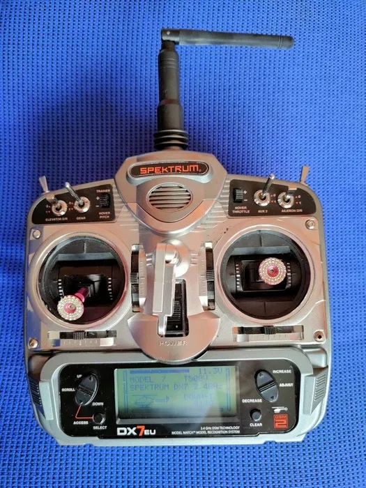 Продавам радиоапаратура Spektrum DX7eu със добра литий полимерна батерия. Апаратурата работи нормално, всичко функционира, без забележки по външния вид. Инсталирани са по-големи джойстици за прецизно управление и балансер за удобство.
