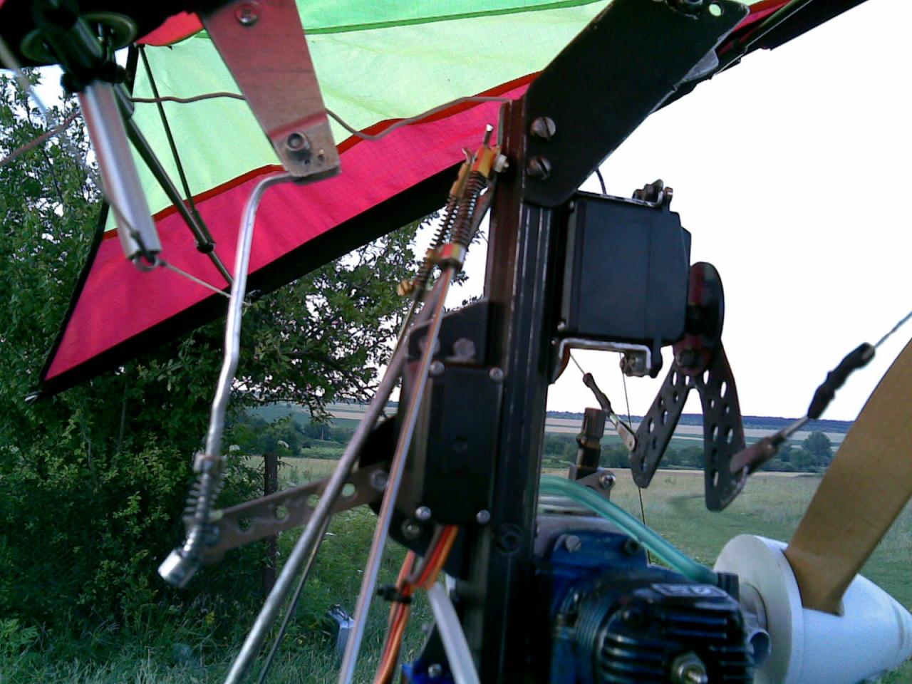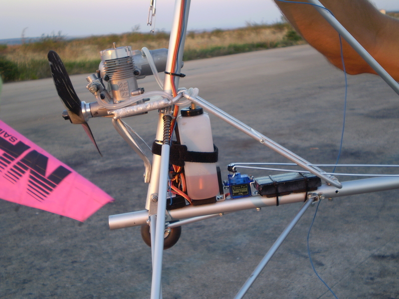 разпереност-2.20м тегло-1770гр. с горивото, двг-o.s max 4cc.Крилото е от дакрон/240гр.м2/,но е малко тежко и не само това,дакрона е много твърд а за това крило,трябва де е по тънък,следователно и по лек за да може да се движи напречката на крилото и да се променя тонелноста,така крилото става по управляемо и по спокоино в полет.Ако някой има такъв плат/дакрон/ ,но да е около 100-120гр.м2 ще му го платя.