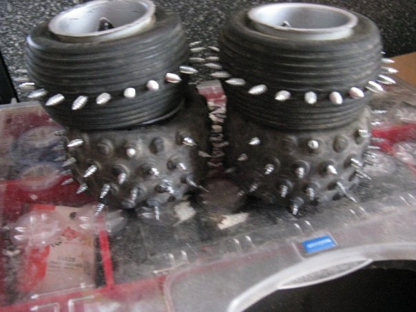 да с локтайт 406 много здраво лепило утре ще проверя думите си ,но вярвам че ще управдае очакванията ми . Цилиндърчетата са от шнур ако може такада да се каже ползват го на изработка на О пръстени по размер , купен е от микромакс имат магазин в Ямбол . И предната вечер падна голямо рязане :shock: а тази вечер и голямо лепене . Утре ще тествам и ако успея и клип да направя ще е най-добре :laughing: надявам се да вършат работа за сняг и меки настилки