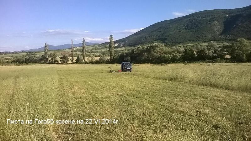 Окосихме днес пистата с Крум, направихме я този път правоъгълна с размери 40х30м. някъде на око. Трябва да е достатъчно за да се излита във всички посоки с по два самолета едновременно. Благодарение на предишните два три дъждовни месеца тази година косихме с около месец по рано. През изминалите години все съм косял някъде около 20 юни, а тази година на 26 май тревата беше такава че не можеше да се излита и каца нормално.