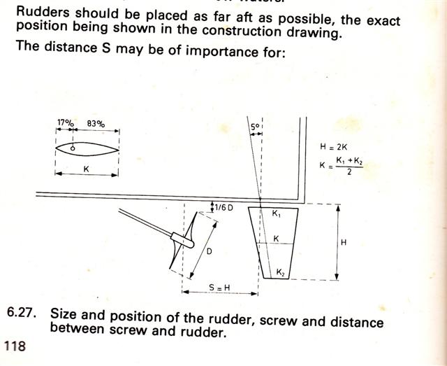 Основното ми затруднение всъщност е, че като не знам дори приблизително размера на винта не мога да предвидя нито отстоянието на края на дейвуда до кила, нито на колко напред от транеца (май така се казваше) трябва да е, нито размера на руля. Ъгъла на поставяне на дейвуда също не е ясен при това положение.