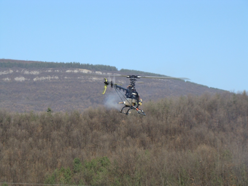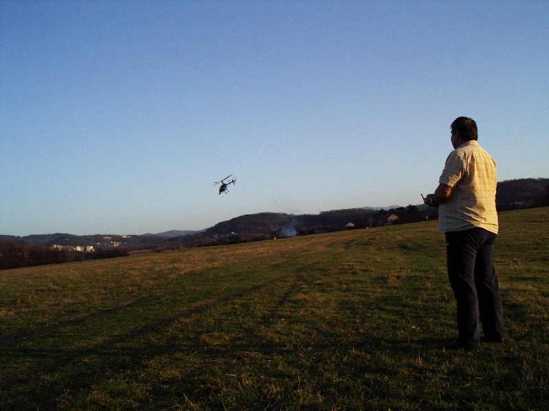 А ето го и моят жалък полет. Чак ме е срам да го публикувам. В края на полета Христо от Ловеч просто ми измъкна апаратурата от ръцете и успешно приземи хелито. Причината за това беше че опашката на хеликоптера силно пълзеше на една страна и аз едвам успявах да го контролирам.