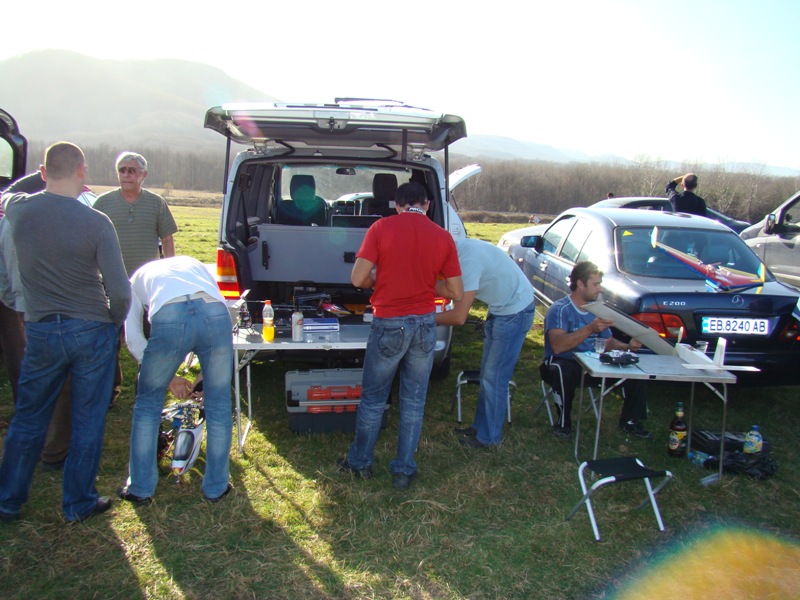 Днешния ден беше супер - времето беше отлично. На Габровската поляна се събрахме рекорден брой хора - над 30 човека с 18-20 коли (и едно куче). Олелията беше огромна. Във всеки един момент от времето в небето имаше по 2-3 модела. Имаше и учудващо голям брой хеликоптери. И най-интересното - нямаше нито един краш. Само дребни повреди. Дефакто всички си прибраха моделите здрави. Това е едно голямо чудо, като се има предвид какви сме новобранци.