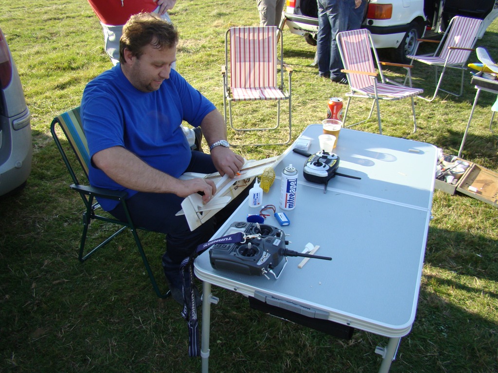 Ето малко смимки от сбирката в неделя. Събрахме се около 10-12 коли, а броя на хората в един момент надхвърли 15. Донесоха се много модели на самолети и хеликоптери. Във всеки един момент от време в небето имаше поне по 2-3 модела. Имаше и доста екшън - два самолета се разминаха на сантиметри във въздуха, техническа повреда в един самолет и в един хеликоптер (хеликоптера не можа да оцелее), строшени крила в друг самолет, няколко краша, няколко невероятни спасявания в последния момент, търсене на части от самолет в зона с размерите на стадион и въобще денят беше невероятно наситен с приключения и удоволствия за всеки един участник в сбирката.