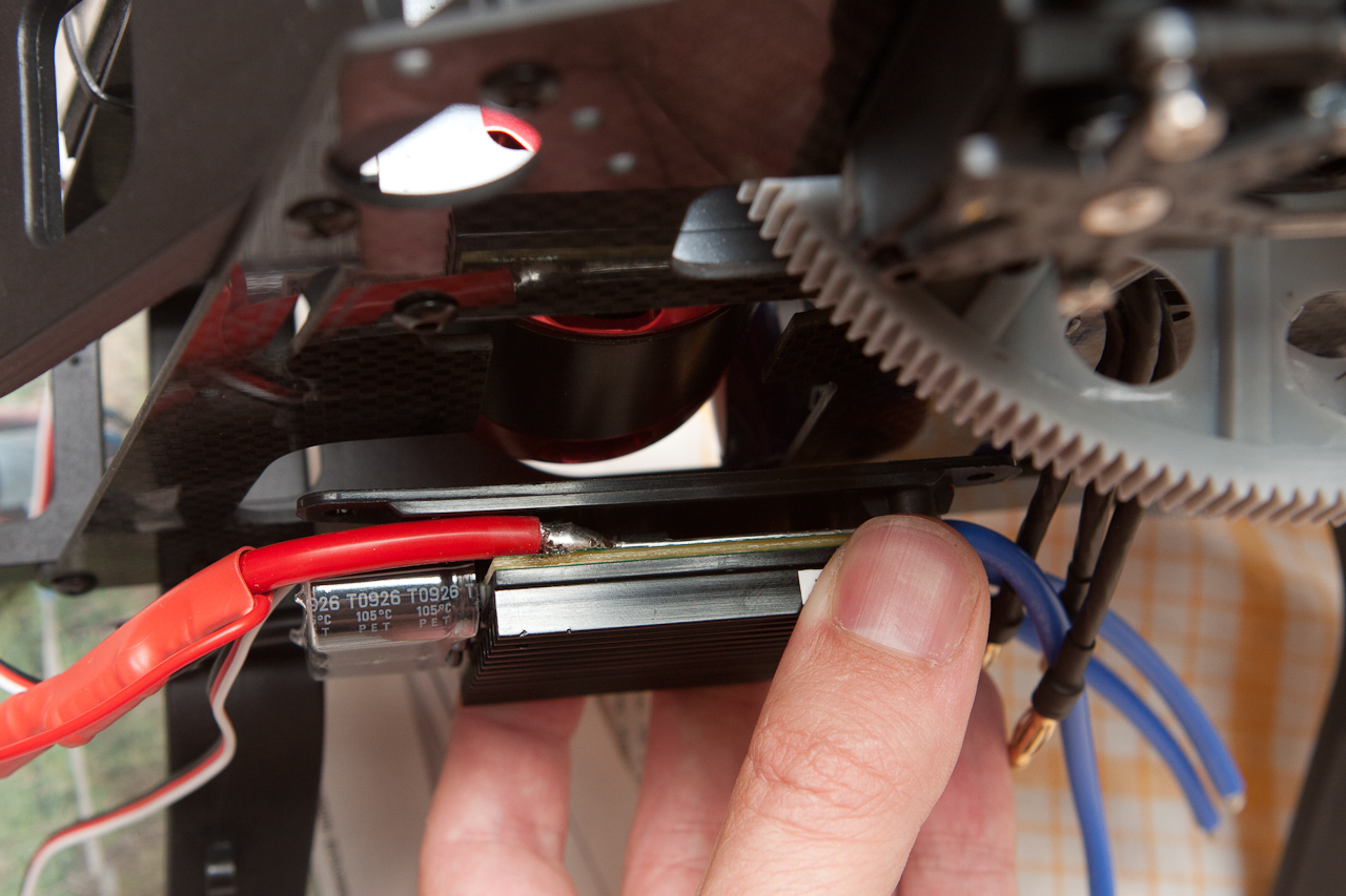 Не съм го палил още. Нямам ESC даже. От механична гледна точка, не е проблем, тъй като моторът е здраво закрепен от горе. Но за загряването не знам. Толкова ли много загрява? Този е 2.8kW мотор и би трябвало да не загрява чак толкова за това хели. Какви са ти съображенията за батерията?