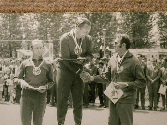 В дясно Петър Пандезов ( Шмид)- нац. тренер до 1979г. , тук в началото на 70-те на някакво Дружба и братство (мисля в Чехия)- . В ляво е друг известен в миналото състезател от СССР- Дъячихин. Класа вероятно е F1E-1kg.( не знам точно)