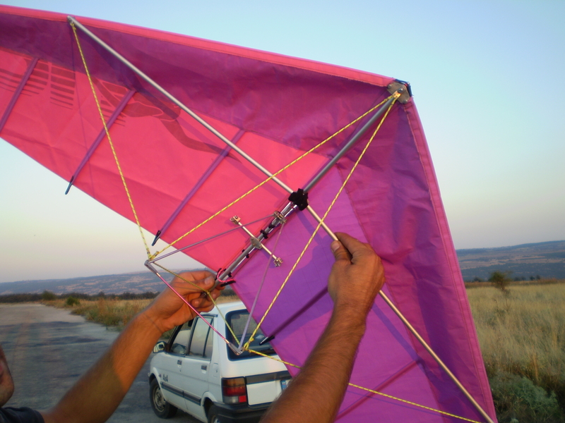 разпереност-2.20м тегло-1770гр. с горивото, двг-o.s max 4cc.Крилото е от дакрон/240гр.м2/,но е малко тежко и не само това,дакрона е много твърд а за това крило,трябва де е по тънък,следователно и по лек за да може да се движи напречката на крилото и да се променя тонелноста,така крилото става по управляемо и по спокоино в полет.Ако някой има такъв плат/дакрон/ ,но да е около 100-120гр.м2 ще му го платя.