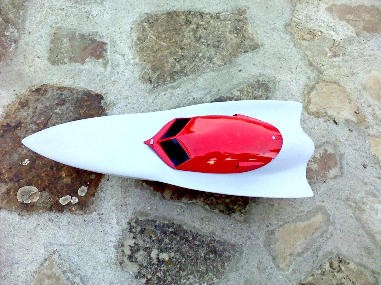 Този корпус е на позната играчка. Предвидена е за задвижване от полупотопен винт. Валолинията трябва да излиза отзад през транеца както при моно моделите.