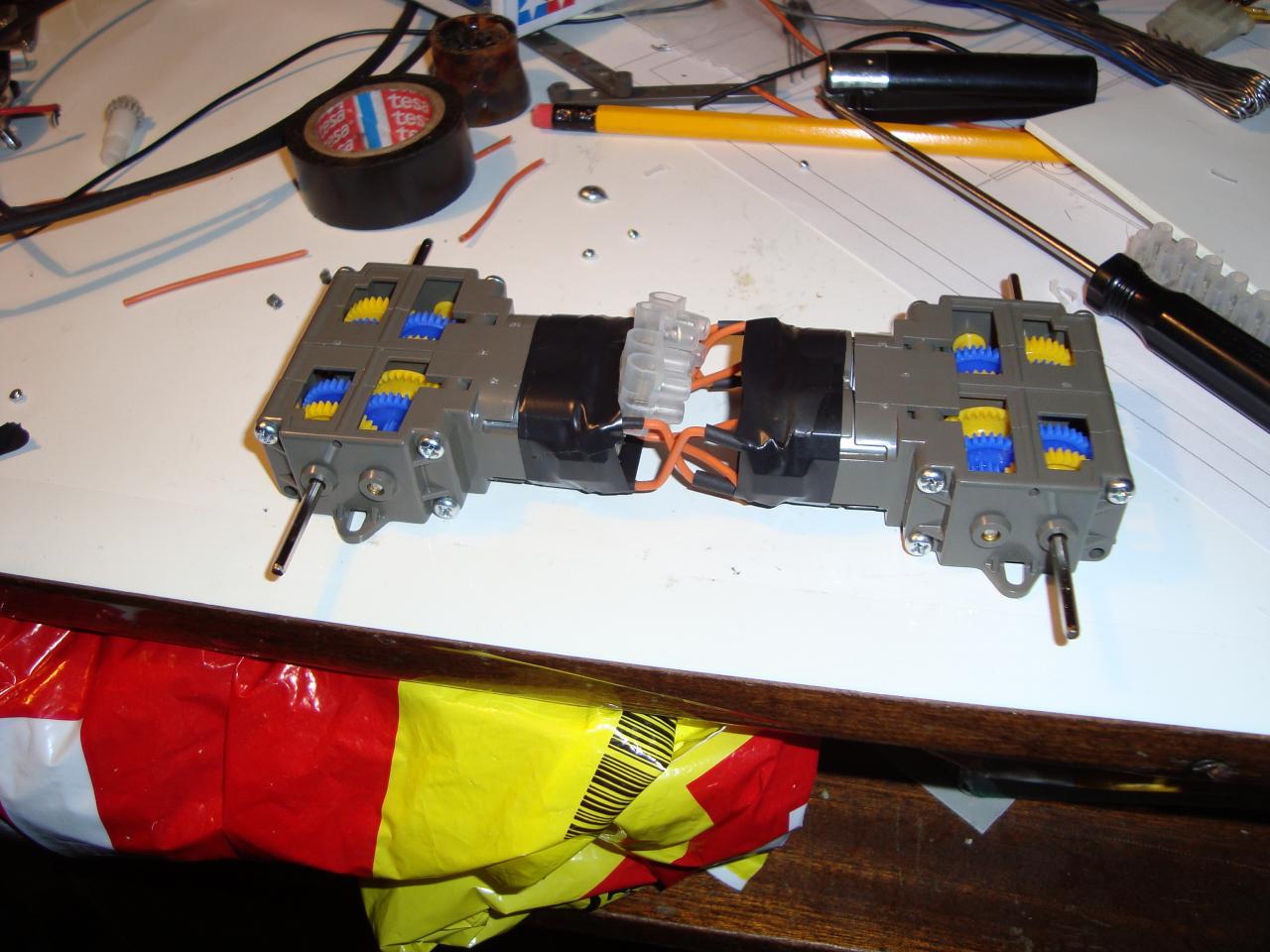 Направих го от два редуктора Tamiya Double Gearbox и стъклотекстолит.