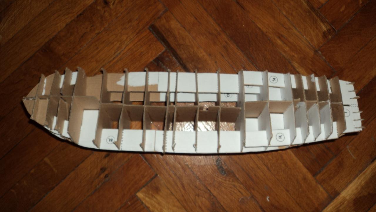 Много лошо брат.Да беше ползвал фазер или шперплат.Аз съм нов но въобще няма да има стабилност-да не говорим за усукване на модела.Просто основата ти е калпава и шпангоутите и те с картон-леле мале.