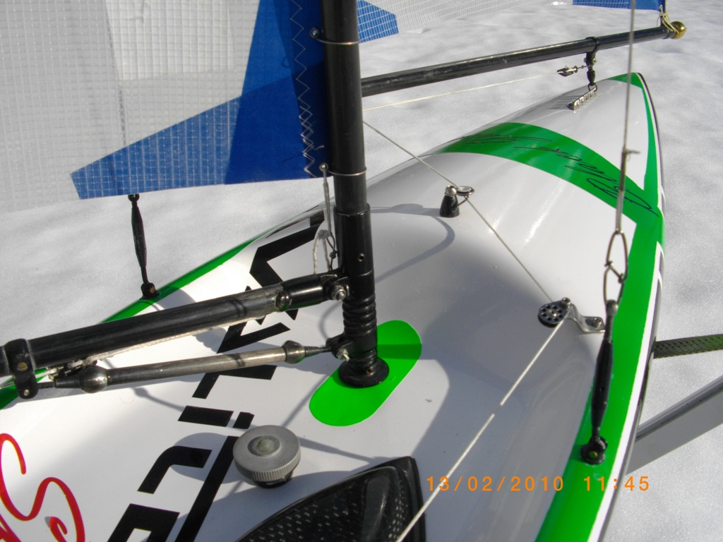 Карбонови гикове, мачта, рул и кил, баласта е хромиран.