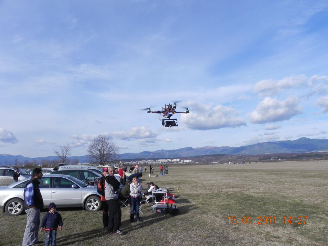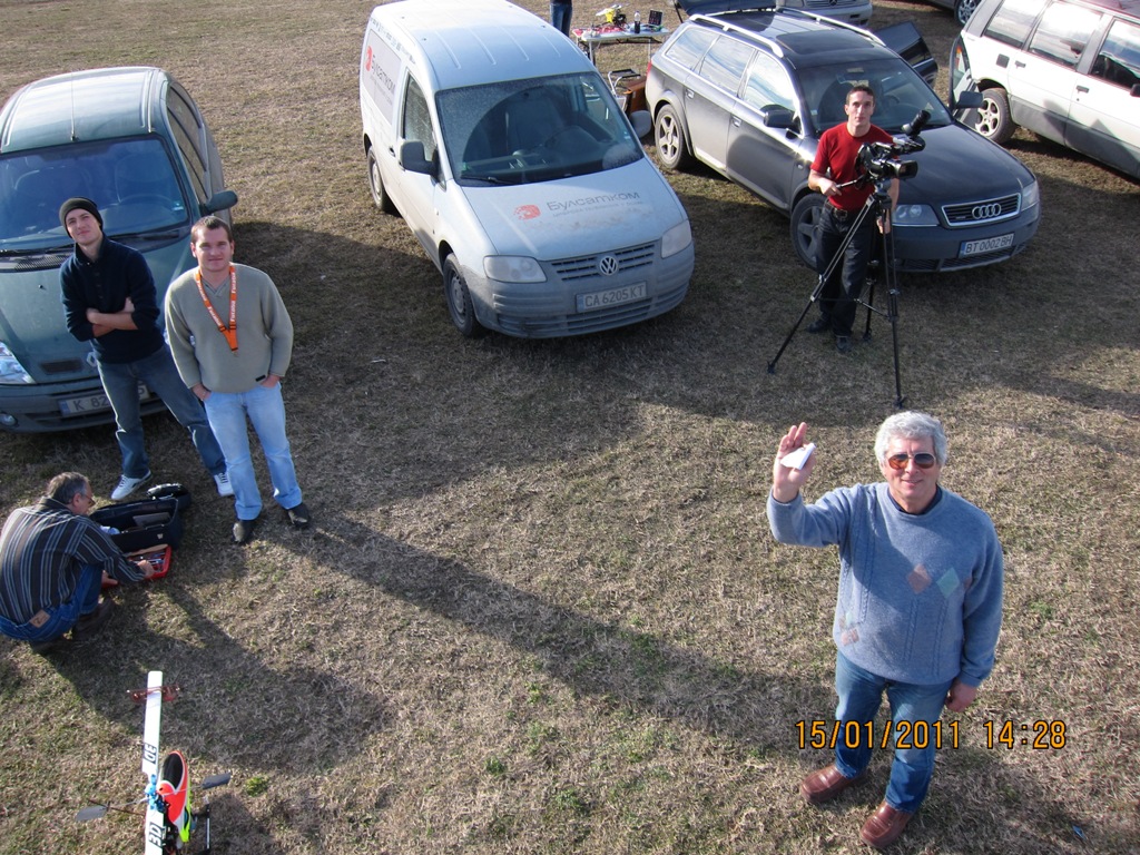 Ето и един полет на Христо Христов. Имаше и още клипове, заснети с четирикоптера, но за съжаление нито един от тях не е за показване. Проблема е, че за да се снима качествен клип от високо, е необходим и обратен канал с камера и видеоочила, за да може оператора да вижда това, което вижда и камерата. Така че засега ще се задоволим с един клип от земята, а в бъдеще ще му мислим как да усъвършенствуваме четирикоптера.