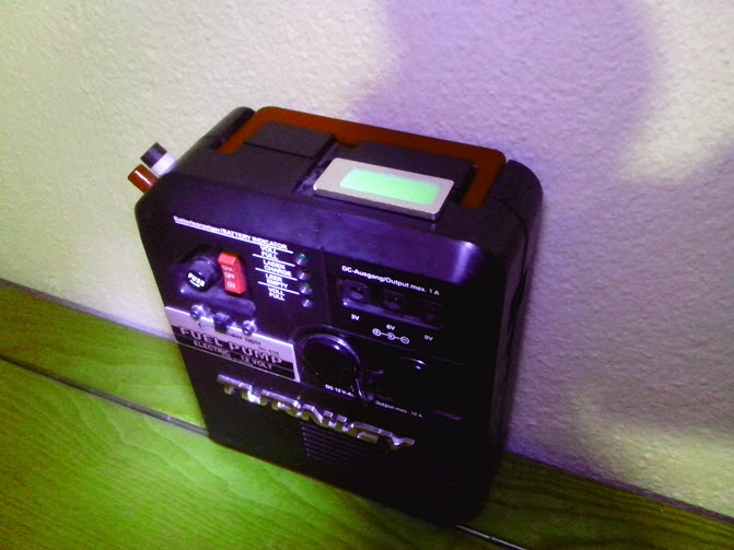 Това, което всъщност най-много ми хареса в това устройство (в първоначалния му вид) бе наличието на глупава "кутийка" или по-скоро капаче в задната му част. Там оригинално се мъдреше силов изход за 12V, неминаващ през никаква електроника. Така или иначе, вече изведох този изход на друго място (горе) с доста по-дебели и здрави кабели от оригиналните, реших да използвам тази ниша точно за това, което две години умувах: