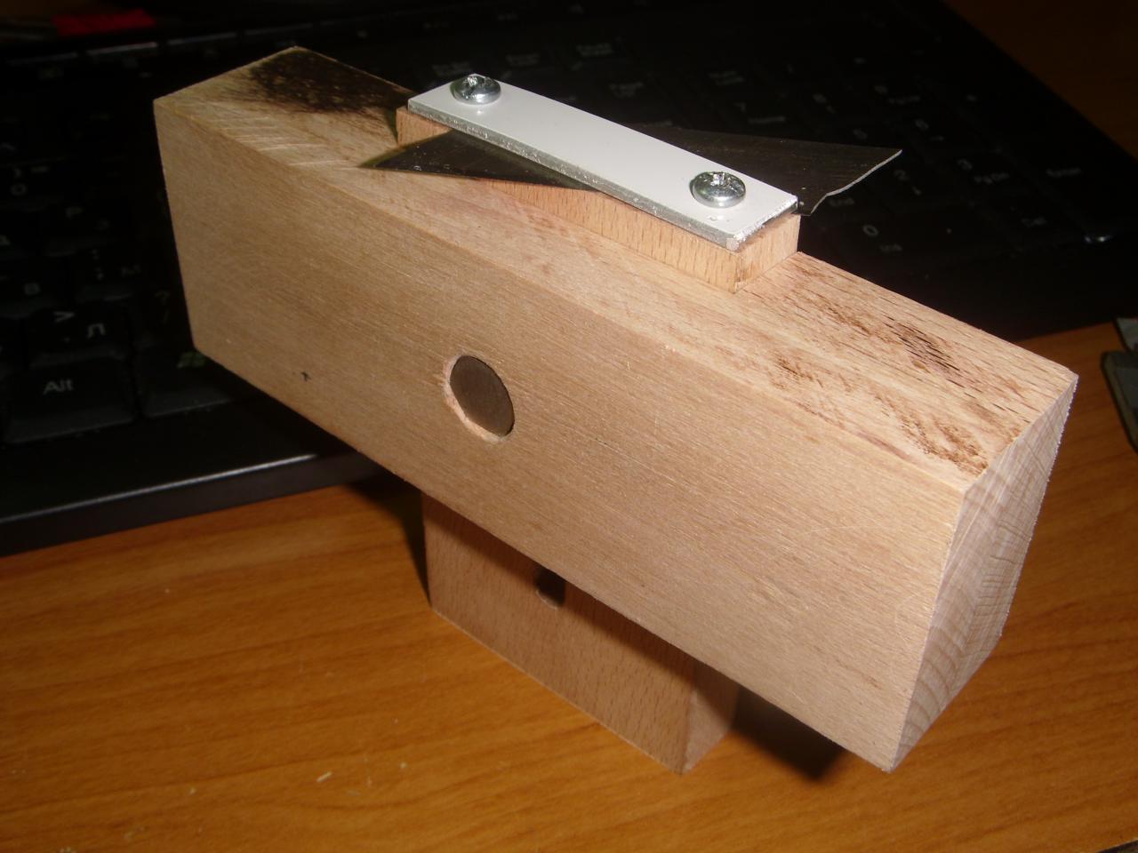 Сега изпробвах тази резачка и се оказа че рязането вече придобива съвсем друго значение. Направих сряза на два пъти по 5мм. в 10мм. дебела балса и стана идеален нямащ нищо общо с ръчното рязане със макетно ножче по линия на ръка. След като се убедих че работи добре пускам чертежа в зип на детайлите за лазерно рязане, а който няма лазер може и на ръка да си ги резне. По принцип е добре да се направи тази резачка от масивно трупче алумин, но поради липса на алумин я направих от шперплат 3мм. дебел като го слепвах за да получа нужната ми дебелина-долното парче 12мм, а горното 9мм. дебели.