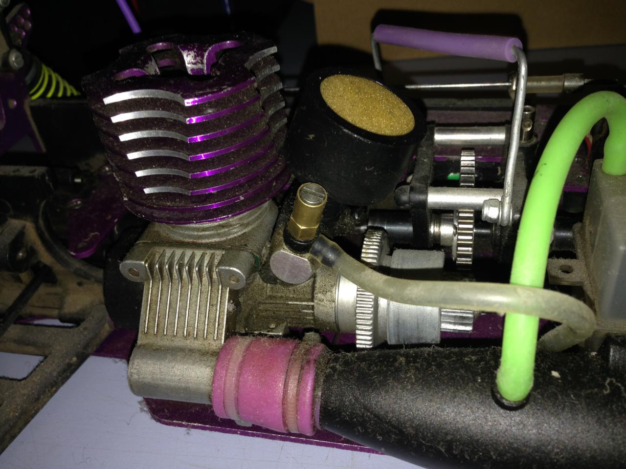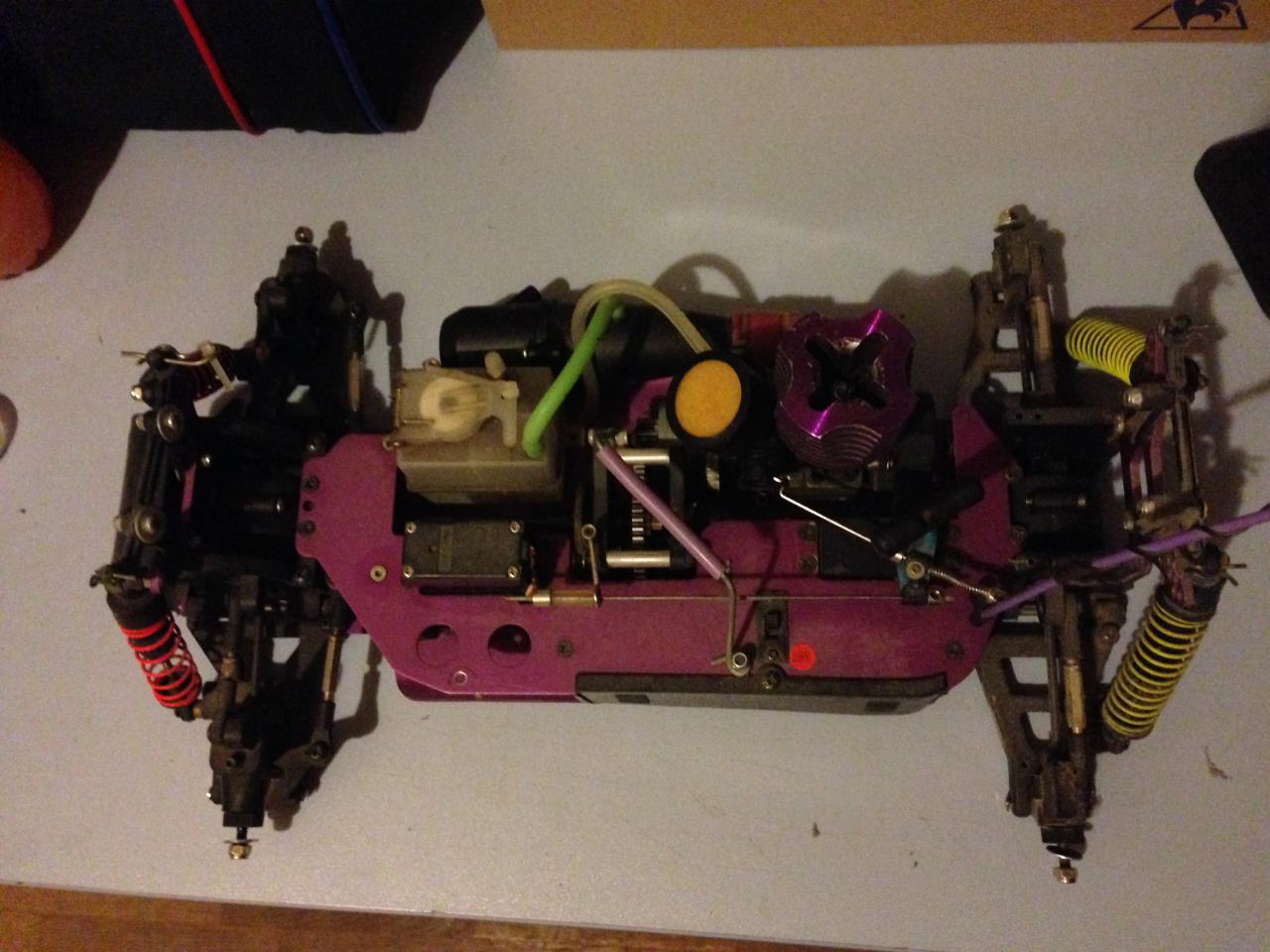 4: 2-канален автомодел с ДВГ. Карал съм го малко, но ми писна. Продава се с 5 гуми с изрядни хексове. Моторът е напълно здрав, само има нужда от настройка, но аз не разбирам как става. Спурът е сменен с метален и е на практика ВЕЧЕН. Моделът има към него и апаратура с акумулаторни батерии, шишенце с афтъррън до половината и масло за филтър почти пълно. Свещта си е наред. Няма течове от резервоара. моделът е мащаб 1:10! Идеален за развлечение през свободното време, а при правилна настройка би бил достоен конкурент и в гонки . Вижте го и него: ЦЕНА 250 ЛВ!!!