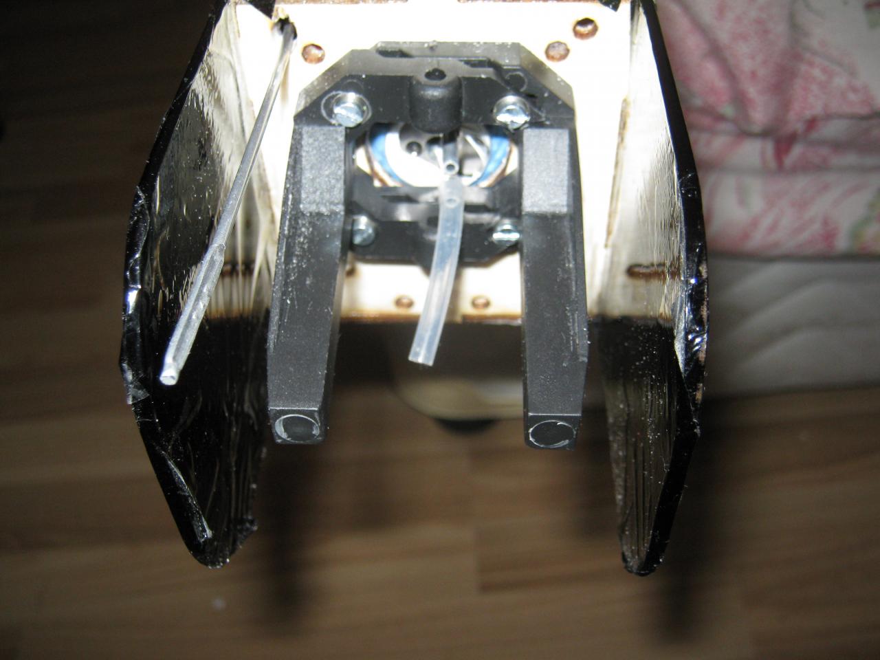при монтажа на резервоара е необходимо да се спазят доста неща. На първо място той трябва да се постави на нивото на карбуратора. Трябва формата и обема да е съобразен с корпуса на модела и с типа (обема) на мотора. за моя случай използвам лекозаоблен резервоар с капацитет 248cc. За да нямам проблеми с разпенване, както и повреда при удар слагам отпред и от страни подложки.Тайно се снабдявам с тях от детската стая . Те са от меко детско килимче с фигурки. От мека шуплеста материя са. За страниците използвам ивици, които закрепвам с двойнолепящо тиксо. След като постои резервоара известно време, те се оформят по формата му.