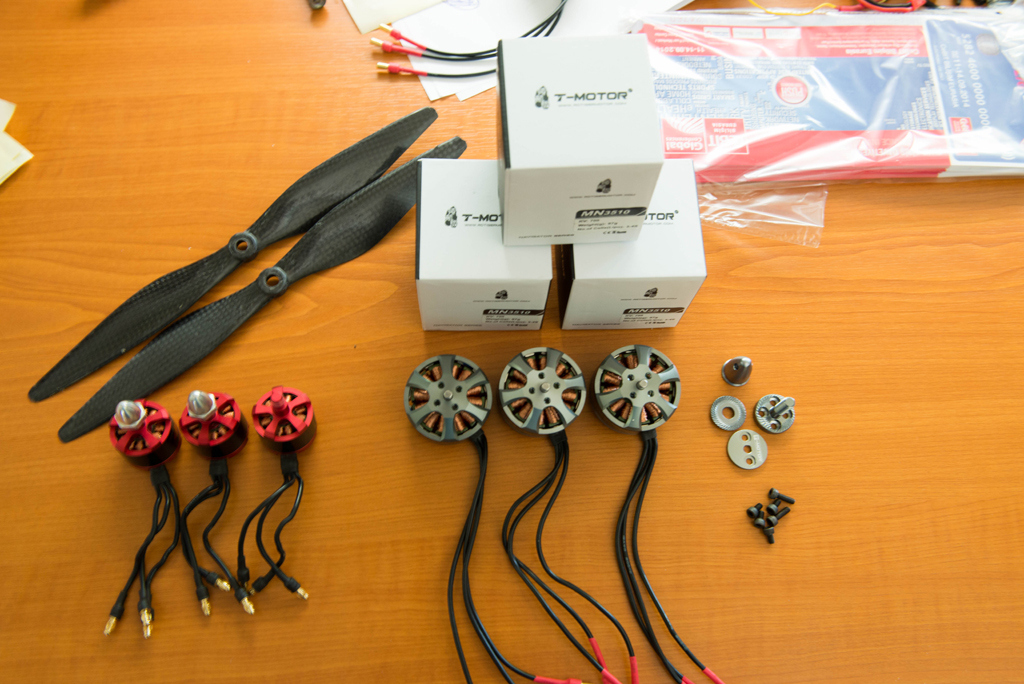 Пристигнаха и новите мотори. Както се вижда разликата в големината не е малка. И в теглото също. Новите мотори са с по-ниско KV - 700 в сравнение с 920 на стоковите мотори.