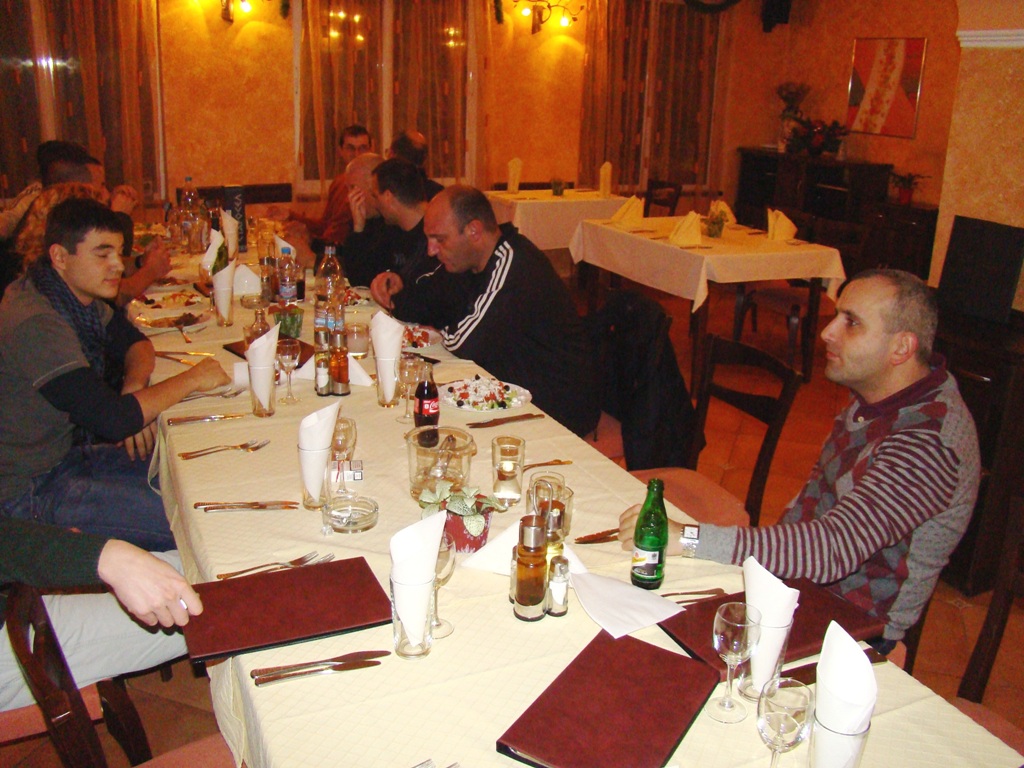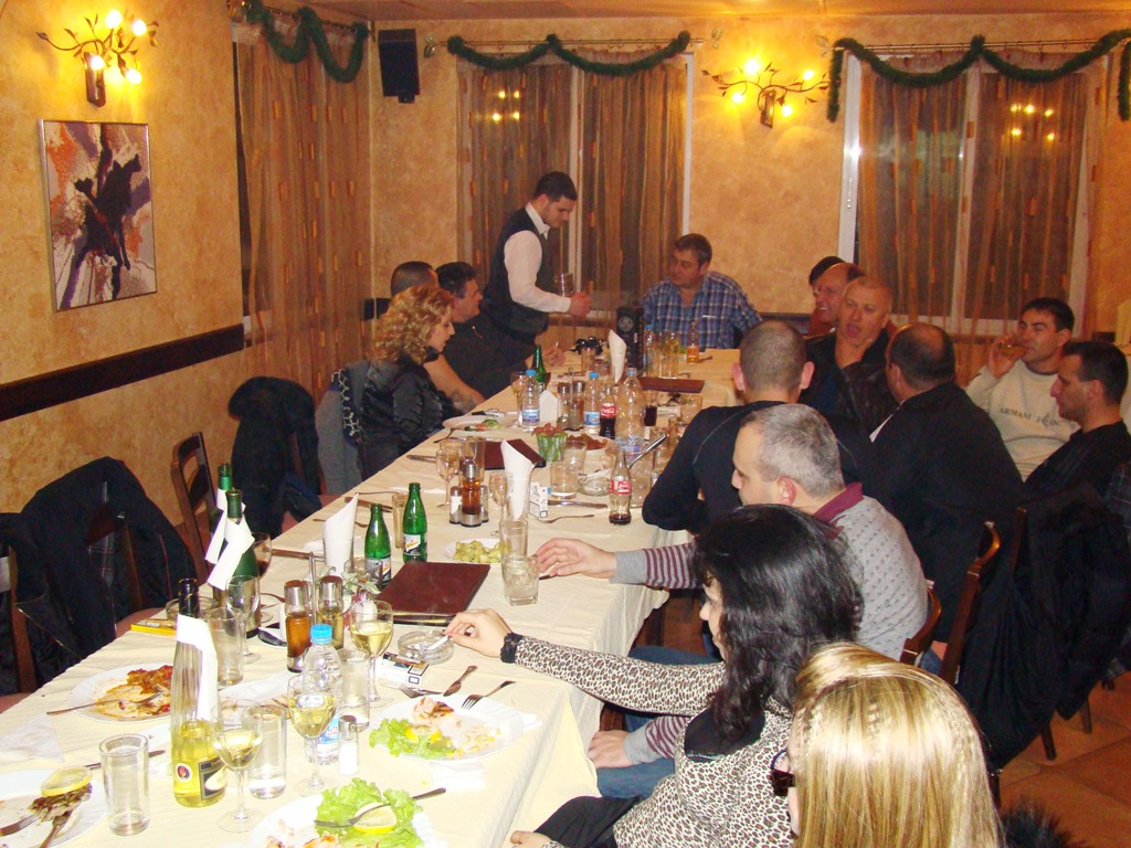 Вечерта празненството също беше изключително. Ядене, пиене, веселие, песни под акомпанимента на акордеонист, викторина с подарък за всеки, заря, боулинг, билярд, дискотека и въобще - пълна програма. Получи се една незабравима вечер.
