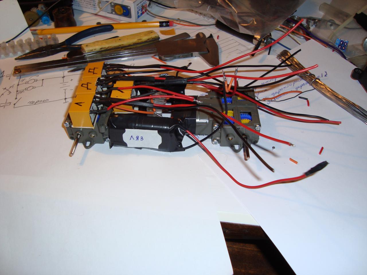 Направих го от два редуктора Tamiya Double Gearbox и стъклотекстолит.