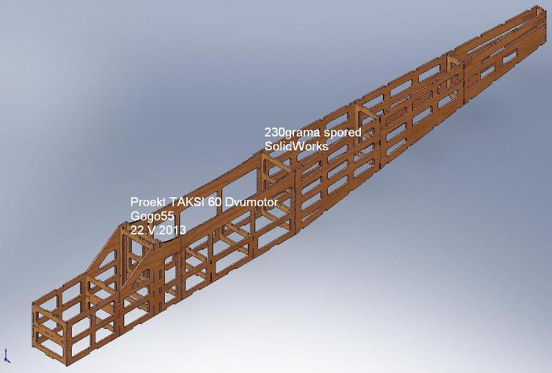Кръщавам модела ТАКСИ 61 защото е в размера за двигател .61 /10кубиков/ около 1,8м. разпереност. Модела го предвиждам предимно за релакс, или снимки, и видеозаснемане от въздуха-затова името му е ТАКСИ. За да бъде максимално стабилен и да лети сам значи трябва да е горноплощник със носещ сигурен и изтестван профил. Ще го направя с два двигателя на крилото ASP21, или ASP32, та чак до ASP52 според теглото му, като ще гоня тяга малко повече от общото полетно тегло което ще се получи. Трябва да дойде под, или около 3кг. по принцип общо полетно тегло този модел. Предвиждам на око горе доле да е около 1кг. гол самолет, 1кг. двг и електроника, и 1кг. полезен товар. Също така предвиждам някога ако ми скимне да го направя с един двигател отпред в носа 10 кубиков метанол, или 20-30 кубиков бензин. За целта просто ще сменя първото ребро от тялото с подходяща моторама на него. За да икономисъм някои грам /поне стотина грама/ ще бъде с основен колесник малко пред крилото с голями гуми даметър поне 80мм. до 120мм. за да нямам грижи при неокосена трева, и със заден малък колесник на опашката. Направата на модела трябва да е максимално бърза, ефтина и лесна, както и евентуални ремонти в бъдеще неопределено време. За целта се спирам на правогълно по сечение тяло за лесно слепване без да има нужда от станоци и прочие изгъзици усложняващи ми живота, и губещи ми времето в лепки вместо в летене. Тялото ще е от няколко части за лесна подмяна само на една от тях при нужда след краш, или чупене. Материал основно тополов шперплат 3мм дебел и борови лонжерони, балса 1,5мм. само за обличане на първата една трета от крилото. Фолио червено и бяло, бялото отгоре, червеното от доло, както на всичките ми самолети. Лепило в минимално количество на хенкел както на всичките ми самолети. При силен удар трябва да се разлепва даден детайл, а не да се чупи близко до слепката! После ремонта ще е лесен и бърз! Та те това е горе долу началното задание което нахвърлях набързо за този модел.