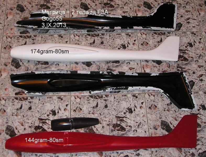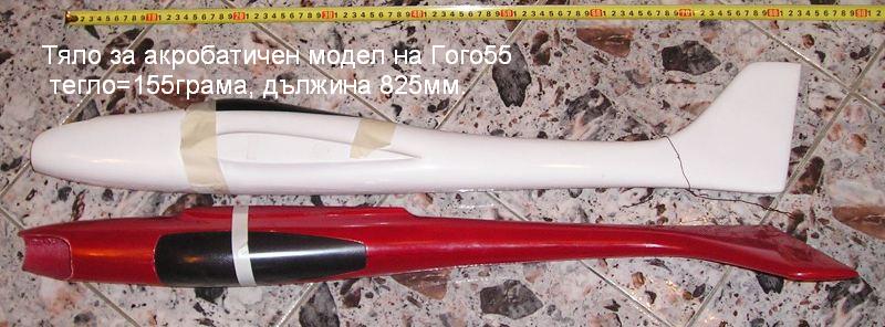 Още две телца излезнаха от старата 15 годишна матрица. Идеалния новогодишен подарък за всеки който иска тяло на акробатичен модел от композит с тегло от около 150грама! Модела става по принцип с разпереност от около 120-130см. с балсово крило по стандартната си технология от време оно. Дължина около 100-110см., ДВГ от 2,5 до 4 куб, или аналог електрически с общо полетно тегло от около 1000 до макс 1200грама на модела готов за полет.