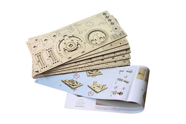 Накратко - Ugears е продукт за колекциониране и хоби. Трябва да се сглоби предварително, всички части за изрязани с лазер и трябва да се сглобят без лепило и само с помощта на клечки за зъби /всичко е включено в комплекта/.