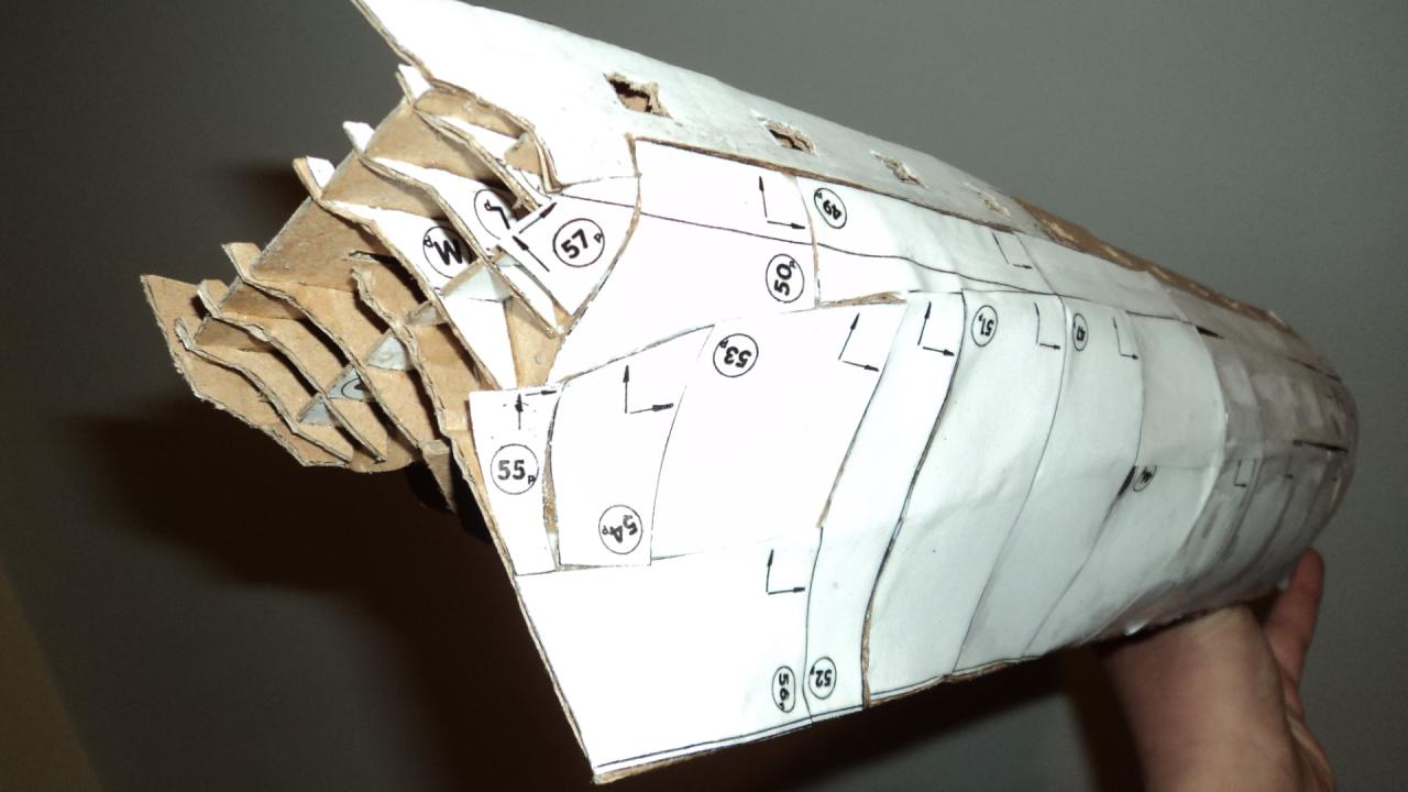 Много лошо брат.Да беше ползвал фазер или шперплат.Аз съм нов но въобще няма да има стабилност-да не говорим за усукване на модела.Просто основата ти е калпава и шпангоутите и те с картон-леле мале.
