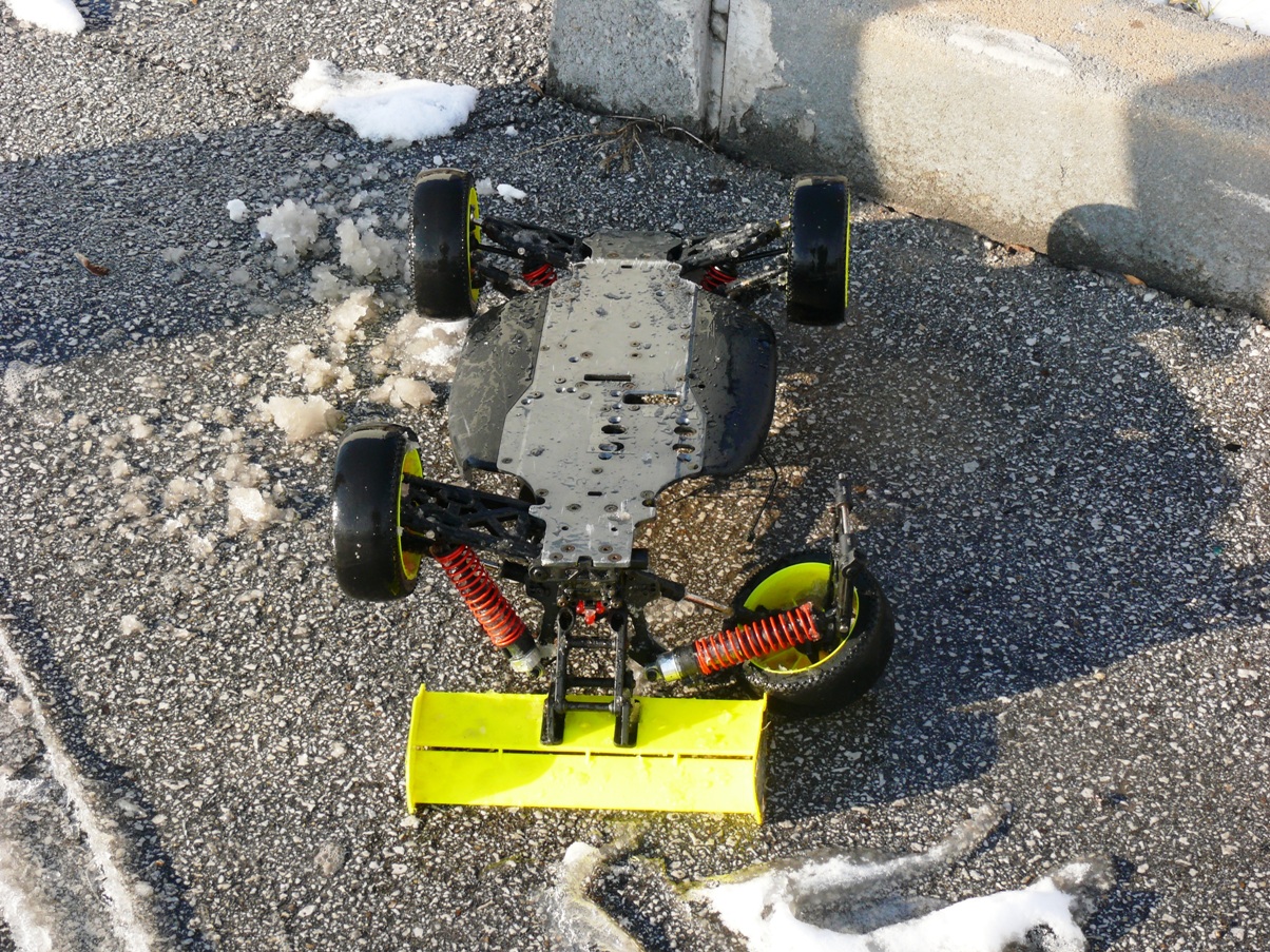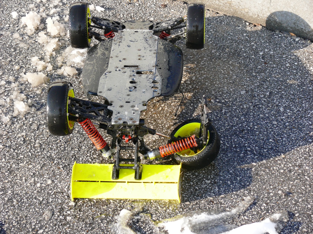 Днес буквално размазах бъгито странично в един бордюр. Половината паркинг беше сух, а другата половина беше мокър- на сухото засилвам и после през водата на висока скорост, и като се завъртя, право задната гума в бордура. Единственото нещо което се счупи е онази пласмаса която свързва осите на задните носачи и чрез която се променя toe in на задните гуми.