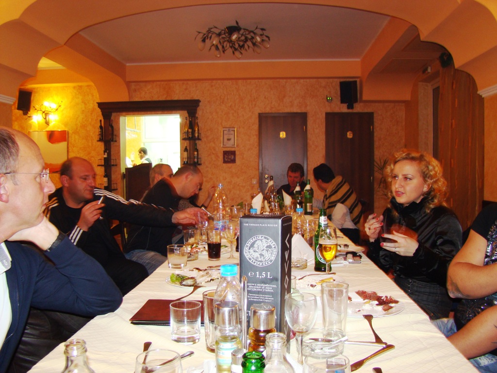 Вечерта празненството също беше изключително. Ядене, пиене, веселие, песни под акомпанимента на акордеонист, викторина с подарък за всеки, заря, боулинг, билярд, дискотека и въобще - пълна програма. Получи се една незабравима вечер.