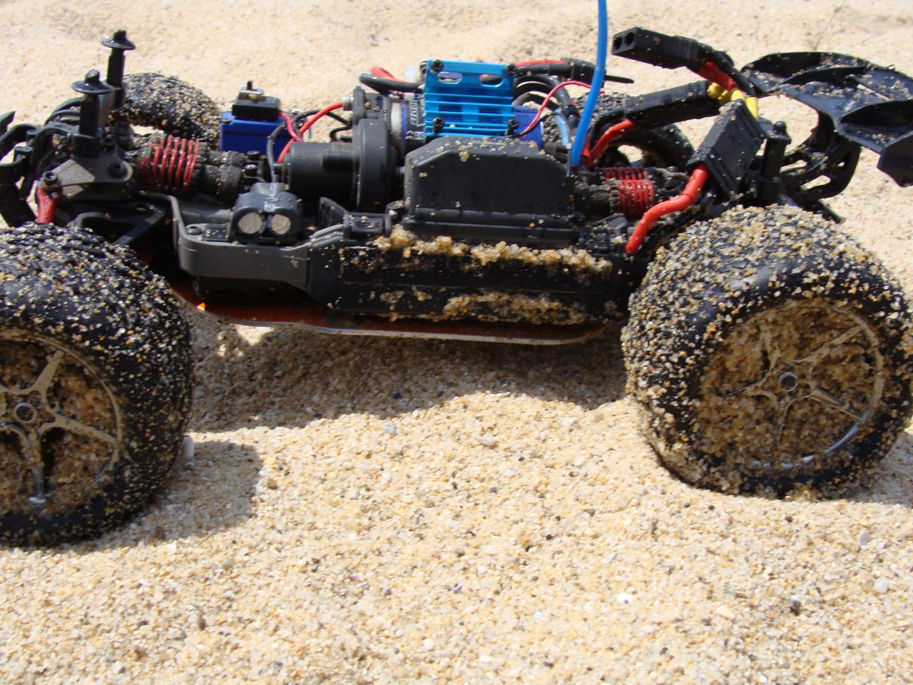 Гумите са от бъги 1/10. Диаметърът им е с 5-10мм по голям от оригиналните гуми на ревото, но затова път са малко по-тясни.