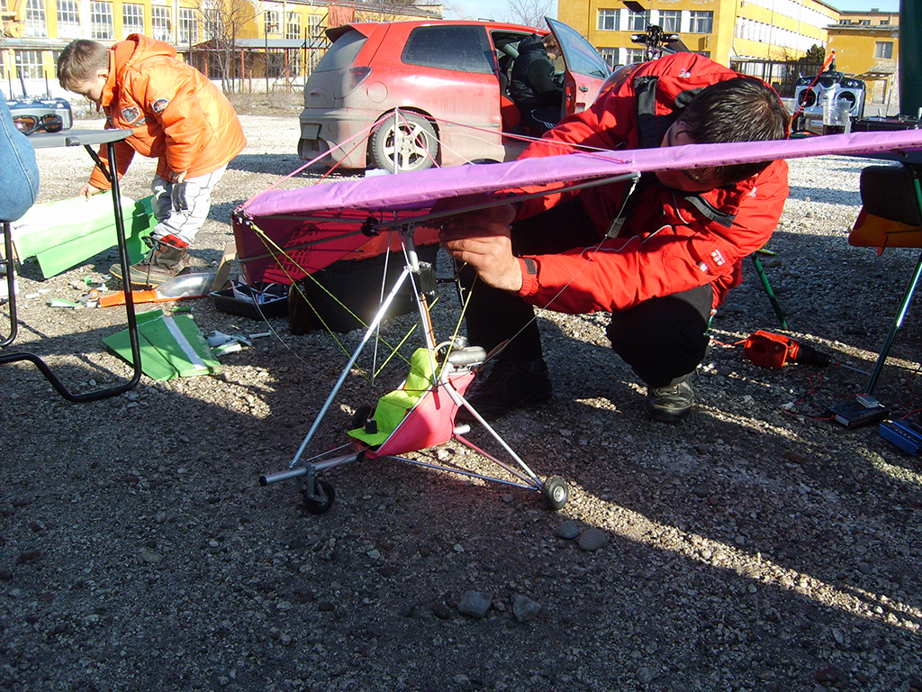 разпереност-2.20м тегло-1770гр. с горивото, двг-o.s max 4cc.Крилото е от дакрон/240гр.м2/,но е малко тежко и не само това,дакрона е много твърд а за това крило,трябва де е по тънък,следователно и по лек за да може да се движи напречката на крилото и да се променя тонелноста,така крилото става по управляемо и по спокоино в полет.Ако някой има такъв плат/дакрон/ ,но да е около 100-120гр.м2 ще му го платя.