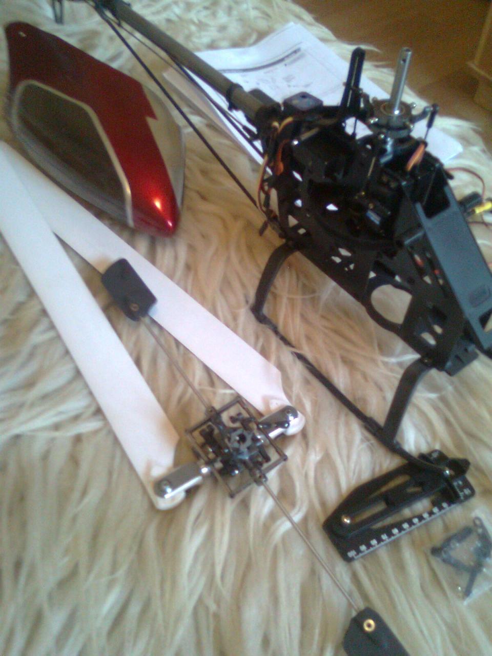 Хеликоптера не е летял, но е на половина сглобен. Необходими са батерия, приемник и една нова втулка, тъй като фабричната е дефектна /показана е на една от снимките по - долу/!