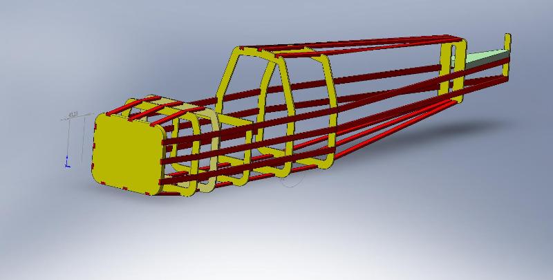 Докато си чакам електрониката и двигателя за суто си драснах набързо една конструкция на тяло за самолет в солид ворка.Това сигурно ще е следващия модел който ще правя след като завърша суто. Водих се от принципа да е максимално лесна за рязане,сглобки и слепки, както и за евентуални ремонти. Основните размери на самолетина ще бъдат дължина 1,32м., разпереност 1,85м.