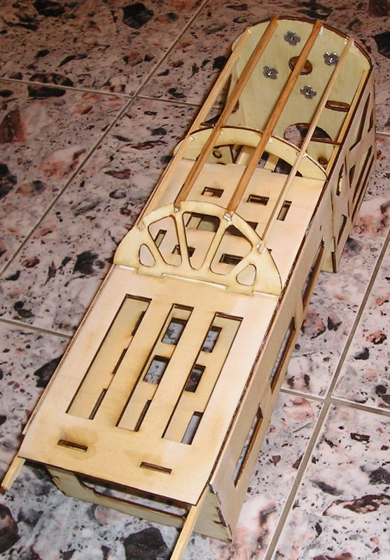 Довърших предната част на тялото.Ако не реша да правя някаква промяна до утре ще сбирам тялото и ще обличам утре по някое време.Тези 3мм. шперплат вместо предишния 2мм. и подсилването си казаха тежката дума, сега това тяло като го държа в ръцете изобщо не се гъне на никъде, нито може да се усуче. Усеща се осезаемо че е много по здраво от предишното.
