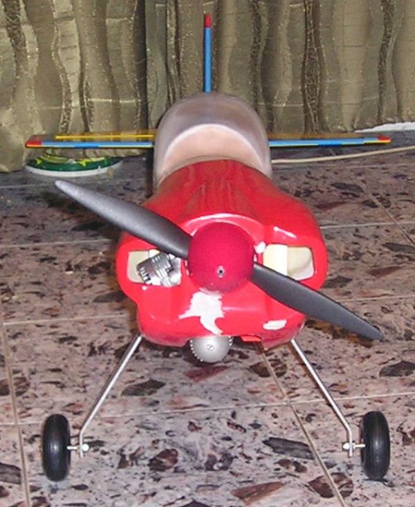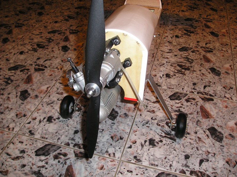 Освен това: при така поставен двигател, виждам сериозен проблем с охлаждането му. Нямаше ли да е много по-добре, ако главата на мотора сочи надолу, а ауспухът настрани? Според мен има голям шанс да се побере в капотажа. Не са виновни конструкторите! Вероятно моделът е предвиден за друг тип ауспух (pitts-style).