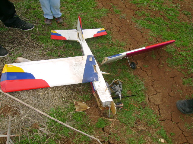 Щети като по чудо малки защото оградата пое целия удар и само сряза крилото на две части точно по средата, разлепи се и моторамата с двигателя, за една две вечери ще го слепя модела.