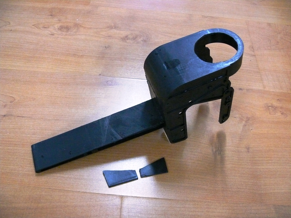 2. Изрязах стойката за сервото на жигльора и от нея изрязах укрепващи парчета.
