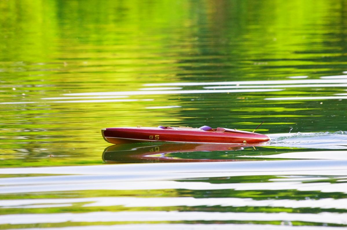 Ами аз затова пуснах по-нагоре снимки на двете лодки, Swallow и Baby Bootleggеr - не гоня. След обсъждането на винтовете и оборотите с колегите в последните страници на темата се отказах от намислената скорост 7,5м/с и пуснах снимките да се види какво ще търся горе-долу като поведение на водата. Не искам да се състезавам с лодката, а да се забавляваме с големия син. Има и друго - времето за каране. При 20-тина А консумация максимална с моите батерии мога да имам около 20 минути каране, ако е на пълна газ. При микс бързо-бавно ако докараме 30 минути ще е супер.