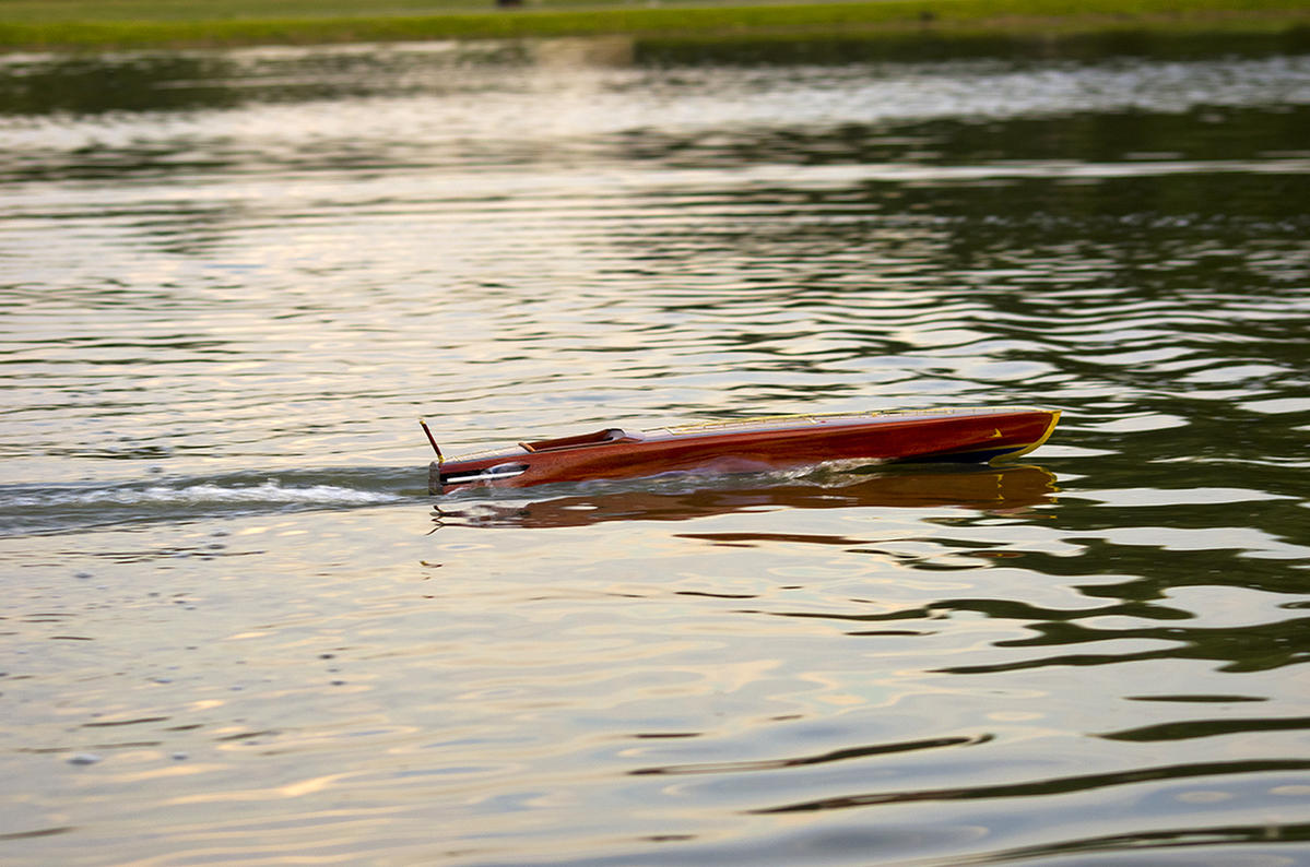 Дървена, около 1м дълга, с един винт и четков двигател Граупнер Speed 600...