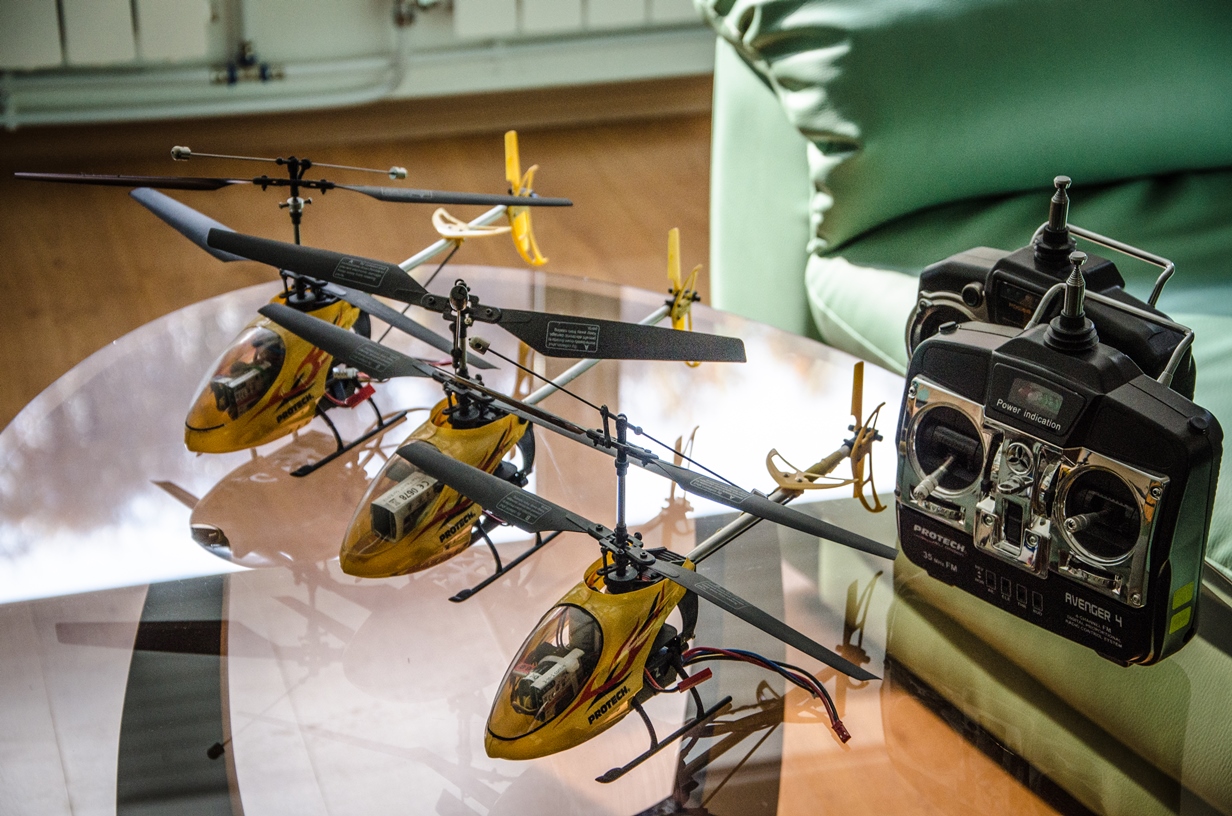Продавам 3 броя коаксиален 4 канален Protech. В комплект с 35MHz апаратура, 2S LiPo батерия, зарядно и резерни лопати. RTF.