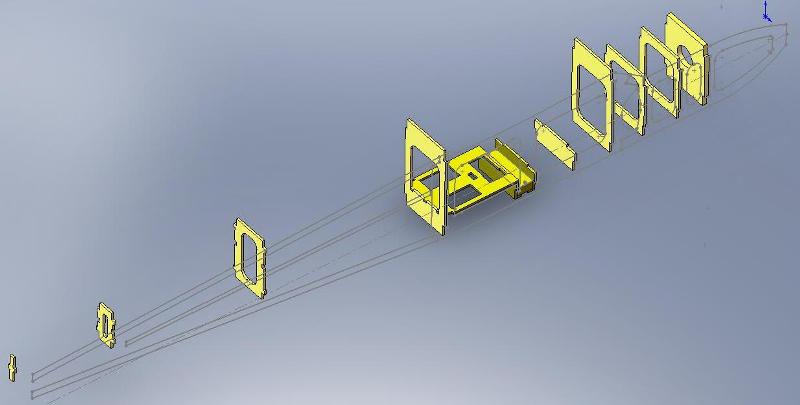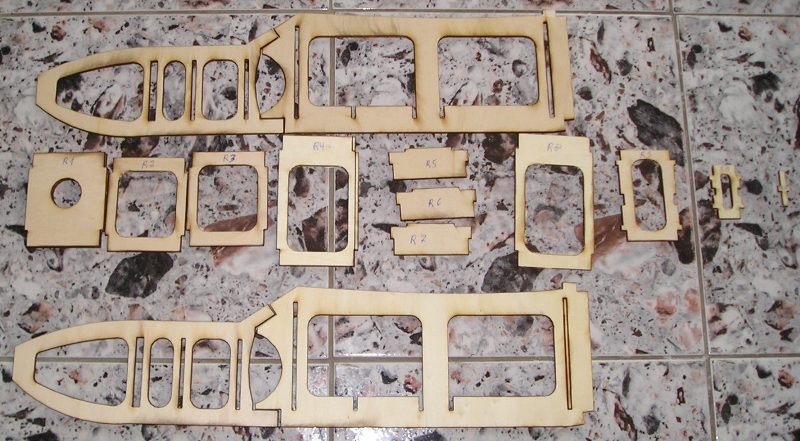 В неделя пак се бех отдал на целодневно литкане, но имах инцидент със един от самолетите си. При излитане когато самолета беше набрал около 1,5-2 метра височина двигателя спря, може би заради силен порив на вятъра челно.Самолета също загуби скорост почти до 0, наведе леко носа надолу и си кацна като планер, но доста твърдо защото нямаше скорост заради насрещния вятър. Направо се изплющя на пистатапочти като хеликоптер. В резултат на това се спука едно ребро от тялото зад крилото.Първо бях решил да сменя само това ребро но после се оказа че трябва да махна горната част балса и серво машинките за да имам достъп до него и да мога да го сваля.Гледката не ми хареса и след кратък размисъл реших че е добре да направя направо ново тяло защото старото имаше поне 100 грама лепило и парчета стъклоплат от предишни ремонти по него, а и външния вид не беше изобщо добър.Пленката на много места беше разлепвана, скъсвана и т.н., с две думи гадно изглеждаше това тяло, личеше си отдалече че много ремонти е приживяло и вече си плаче за ново.Тялото така и така го бях отворил и взех че свалих точните размери на всичките ребра и си ги начертах в солида.Страниците когато ги чертах ги промених доста като сложих доста подсилване на тези места който ми се бяха счупвали преди по време на експлоатацията на този самолет, при твърди кацания особено идва слабичко това тяло както си беше оригинал, промених и предните няколко ребра пак с цел усилване.С две думи пречартах го, но си направих промени вследствие на опита който имах, и предишните ремонти който съм правил по него.После след чертането направо на лазера /добре е да си има човек лазер в къщи/ и след още ден на слепки се получи ново тяло за стария самолет:).Като тегло това тяло дойде 340грама и не е много, даже е идеално.Общото полетно тегло на този самолет готов за полет преди беше 2500грама.Цялата тази работа ми отне почти 2 дена основно вечер.Резултата обаче си заслужаваше и сега съм доволен от свършената работа и най вече че имам триизмерен чертеж на тяло което мога да правя когато си поискам