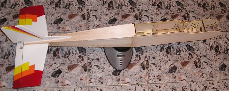 До сега използвах материали който си имах в къщи, обаче балсата 2мм. ми свърши.На 20.VІІІ поръчах балса от стелди но се оказа че е отпуска до 29.VІІІ. така че другата седмица ще ми пристигне балсата с която да продължа обличането на модела.По модела остана да се облече със балса и пленка и след това да се накичи електрониката.През тази една седмица през която чакам балсата съм се отдал само на литкане и тренировки с друг самолет![]()