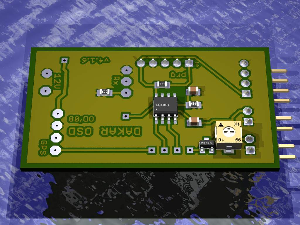 МАХ232 е на платката с него комуникирам с другата ми платка на която е ГПС-а тоест ГПСот автопилота комуникира през МАХ 232 с ОСД-то така ще се предпазим от смущение по линията така или иначе ОСД-то няма да е съвсем при автопилота но ако искаш прикачи едно куплонгче между контролера и МАХ-а за директно скачане може и второ с преобразувател за ниво така ще станем по универсални, мисля ,че от разделителни кондензатори няма да има нужда това го правят диодчетата, а аз така или иначе ползвам керамики в тактовия генератор , катопроектирам платката този възел го правя универсален за да може и двата вариянта да се ползват... ако искаш може да сложим и токовия сензор на платката въпреки че не ми се ще силови кабелаци да вървят около видеото...за съжаление вградения генератор няма да можем да ползваме нестабилен е дори и да удурдисаме пропорционалностите има опасност да се получи пълзене на синхро импулса и от там да почне да прескача по кадар..