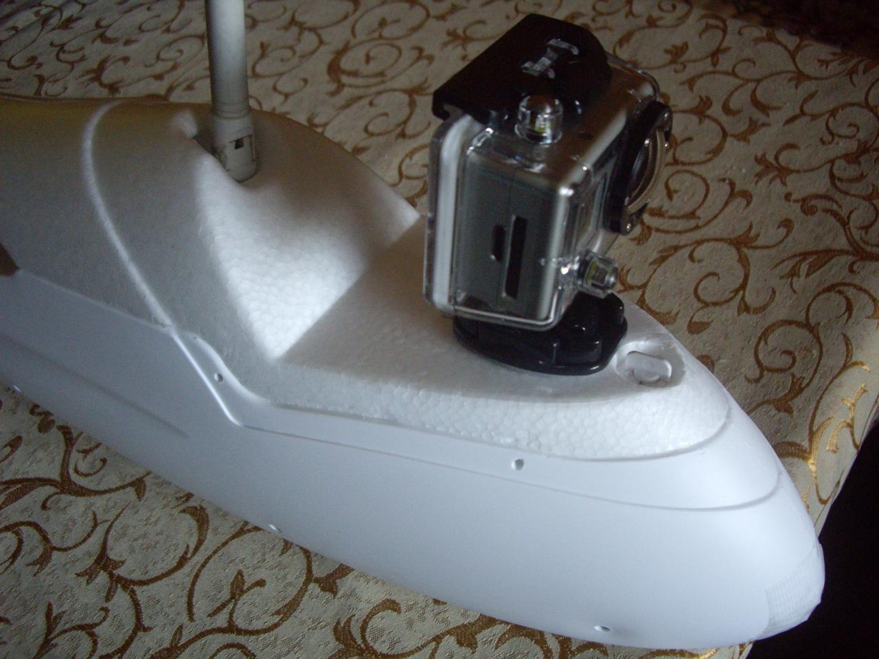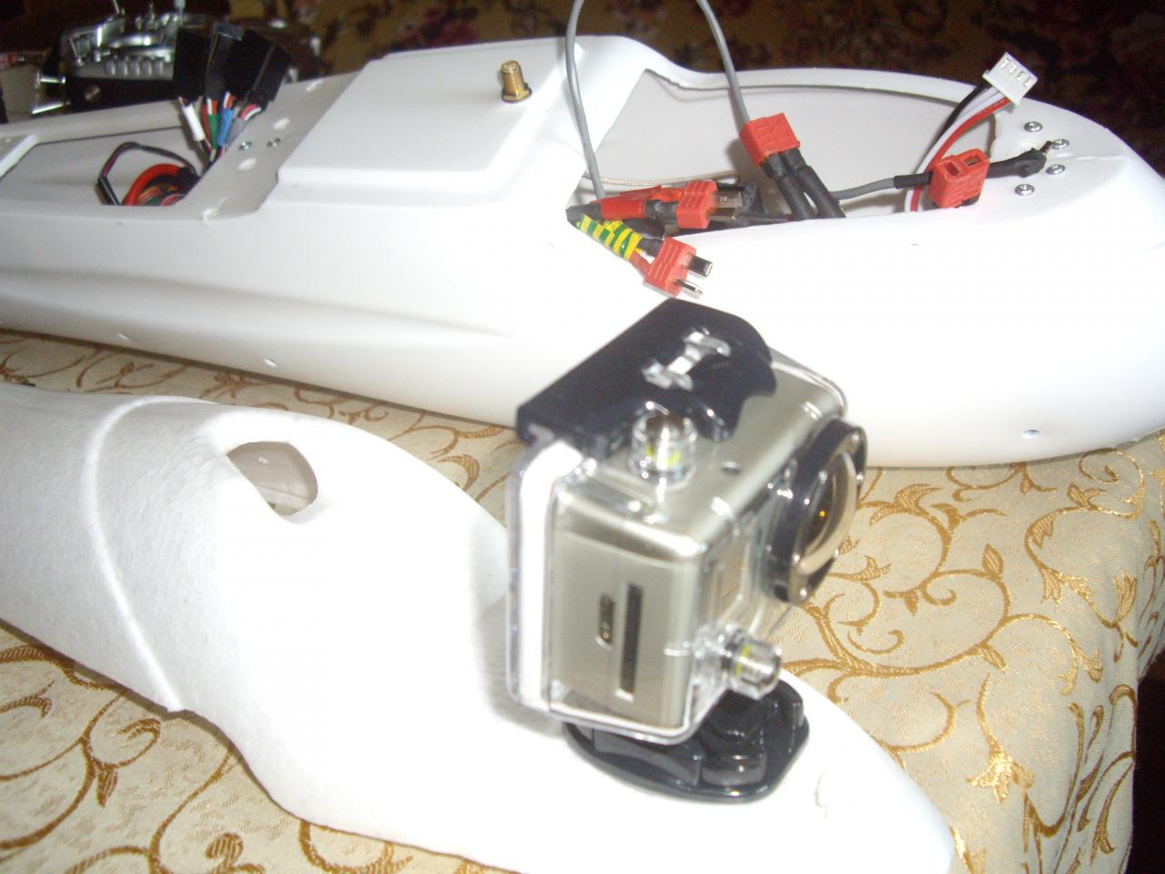 Монтирах камерата GoPro Hero 2 за сега без Pan/Tilt, по-нататък ще мога да я движа с Head Тracker с движение на главата.